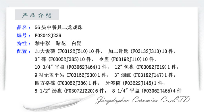 56頭中餐具二龍戲珠