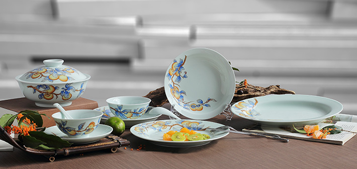 36頭青釉手繪中餐具--事事如意